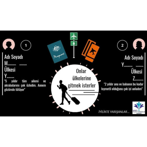 Dilerseniz bu projeye destek olarak bir öğrencinin memleketine kavuşmasına, ailesine ulaşmasına ya da hayatına yeni bir sayfa açmasına vesile olabilirsiniz. Yapılacak her destek, miktarından bağımsız olarak çok derin ve çok insani bir ihtiyaca karşılık gelmektedir.