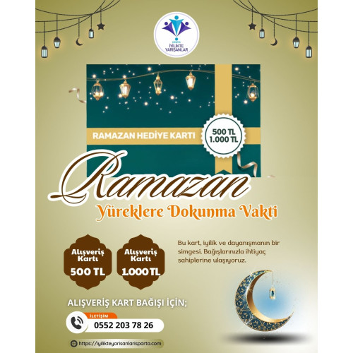 500 veya 1000 TL lik alışveriş kartı ile bir ailenin mutluğuna ortak olabilirsiniz.